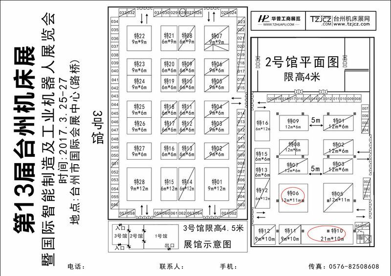 台州展展会名称:第13届台州机床展 暨国际智能制造及工业机器人展览会 展会时间:2017年3月25-27日 地址:台州市国际会展中心(路桥) 展位号:2号馆特06
